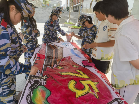 9月26日,艺术创意学院组织开展“山河锦绣,指尖传情”主题绘画活动。学生们充分发挥专业特长,全院学生齐参与,龙飞凤舞,挥笔泼墨,接力完成了包含天安门、长城、华表、红旗等代表性元素的大型国庆主题绘画,表达了对祖国母亲的真挚情感和祝福,也让刚入校的新生们充分体验到了专业乐趣和学院浓厚的艺术氛围。