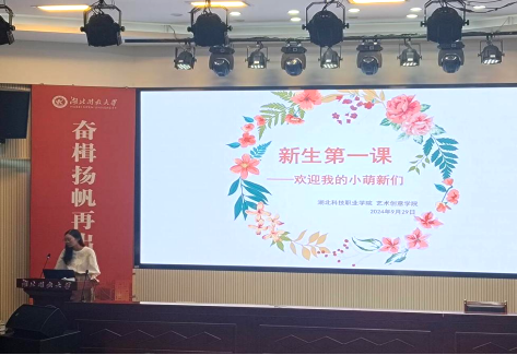 本网讯(通讯员 韦春玲 文/图)为了帮助2024级新生尽快转变身份角色、适应大学生活,明确学习目标、培养专业能力,遵守校规校纪,合理规划人生,2024年9月29日下午,艺术创意学院2024级新生“开学第一课”在鲁巷校区8号教学楼2楼报告厅举行。艺术创意学院副院长熊雯婧、专业教师代表、全体专兼职辅导员以及全体新生参加本次活动。