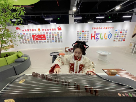 “开始了!快看,快看!”随着学生社团组织——音乐社、汉服社、笛箫社的惊艳亮相,各具国潮文化与传统特色的节目开始上演。国潮歌曲、传统国乐、汉服演艺……由多个表演类社团精心编排的节目在不同活动区域依次开演。曼妙的汉服、悠扬的笛声、动听的歌声与大学生活动中心的美景共同绘制出一幅生动的美丽画卷,吸引了众多学生前来打卡观看游玩。