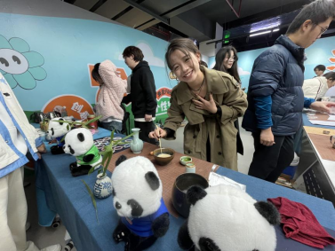 在创意集市,“蕴藏”了近十个宝藏摊位,分为国风体验、潮玩手作、运动游戏三大板块。除了音乐会融入了更多的中华优秀传统文化,游戏中还设计融入了更多的湖科元素。“茶酒社”中西结合的创意调饮、社团工作部提供的会跳舞的“五彩校园”熊猫吉祥物、“DIY”社的创意戏曲熊猫冰箱贴在国潮集市现场随处可见。
