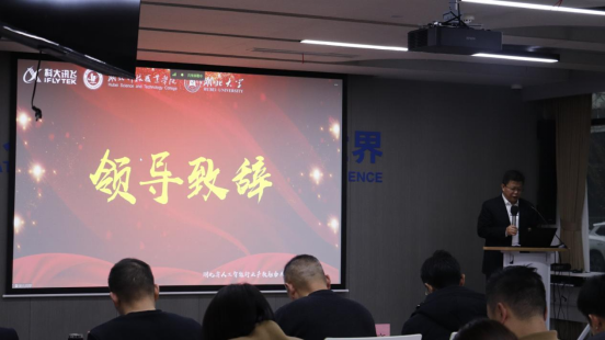 李伦军致欢迎辞,并介绍了科大讯飞人工智能技术的最新研究和应用。