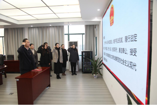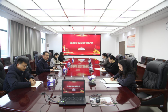 在奏唱中华人民共和国国歌后,领誓人左手抚按《中华人民共和国宪法》,右手举拳,领诵誓词,其他宣誓人齐声跟诵,誓言铿锵有力,承诺掷地有声。宣誓完毕后,全体监察官现场签订了学校纪检监察干部承诺书。