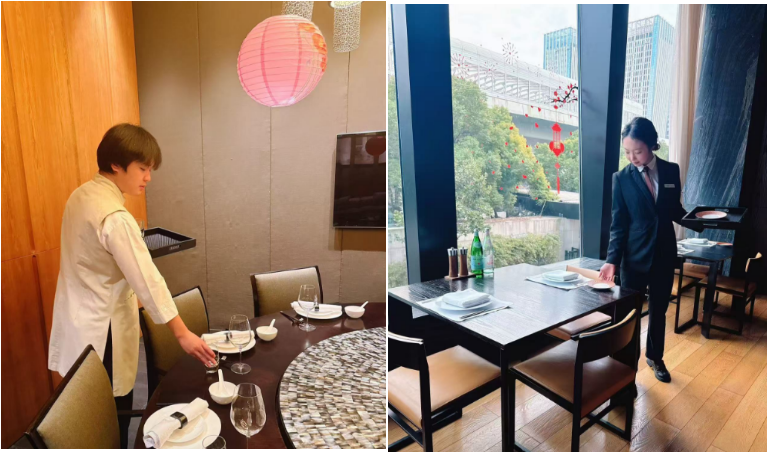 学生在校企合作单位中西餐厅开展酒店服务赛项备赛