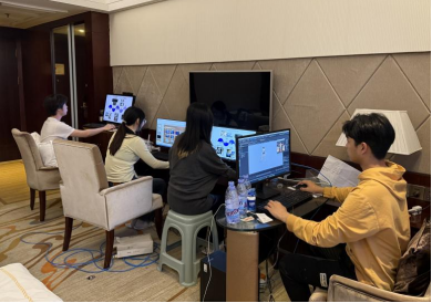 比赛前夕根据现场情况在酒店进行演练、微调参赛各环节