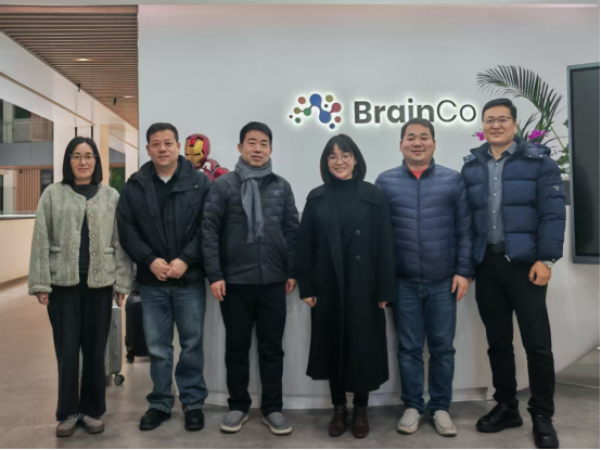 强脑科技是哈佛大学创新实验室孵化的脑机接口领域领先企业,是全球第二个融资近3亿美元的脑机接口公司,实现了全球首个便携式高精度脑机接口产品10万台量产。座谈会前,强脑科技现场展示了全球首款便携式高精度脑机接口产品的量产成果,并系统介绍了“脑机+人工智能”技术在医疗康复、智能家居、教育训练等场景的应用生态。涂家海一行通过沉浸式体验智能仿生手完成精细抓取、智能控制等高阶交互场景,实地考察了企业研发中心与产品测试实验室。