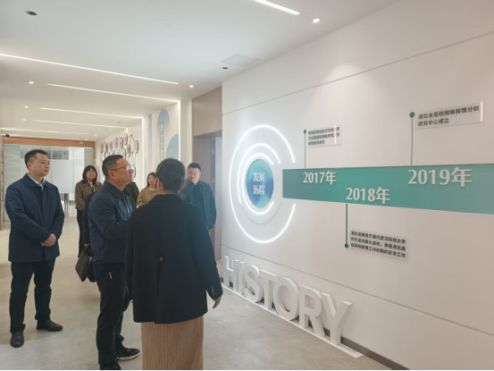 座谈会后,调研组参观了武科大校园110指挥中心和湖北省高校网络舆情分析研究中心。