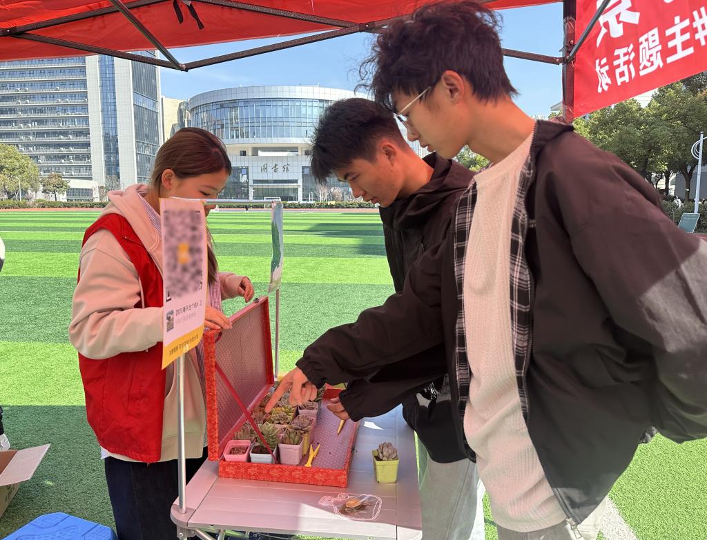 同学们将自己的作品粘贴在海报上或者挂在绳子上,并扫描二维码上传图片共享美好,活动收集与春天的合影322张。一张张美好的瞬间,一件件独一无二的工艺品,展示了同学们的才华和创意,也传递了他们对生活的热爱和对未来的憧憬。此次活动特别设置了多肉领取环节,同学们拍摄自己与校园美景的合影,即可领取多肉植物。