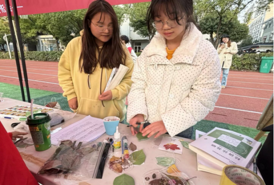 同学们领取制作工艺品所需的材料包,内含树叶、胶水、彩纸、剪刀、颜料等。他们充分发挥自己的想象力和创造力,将树叶裁剪成各种形状,用彩纸制作出精美的装饰。每一片树叶、每一张彩纸、每一笔颜料都透露着同学们对春天到来的喜悦。经过一番精心制作,一件件独具匠心的工艺品呈现在大家眼前。