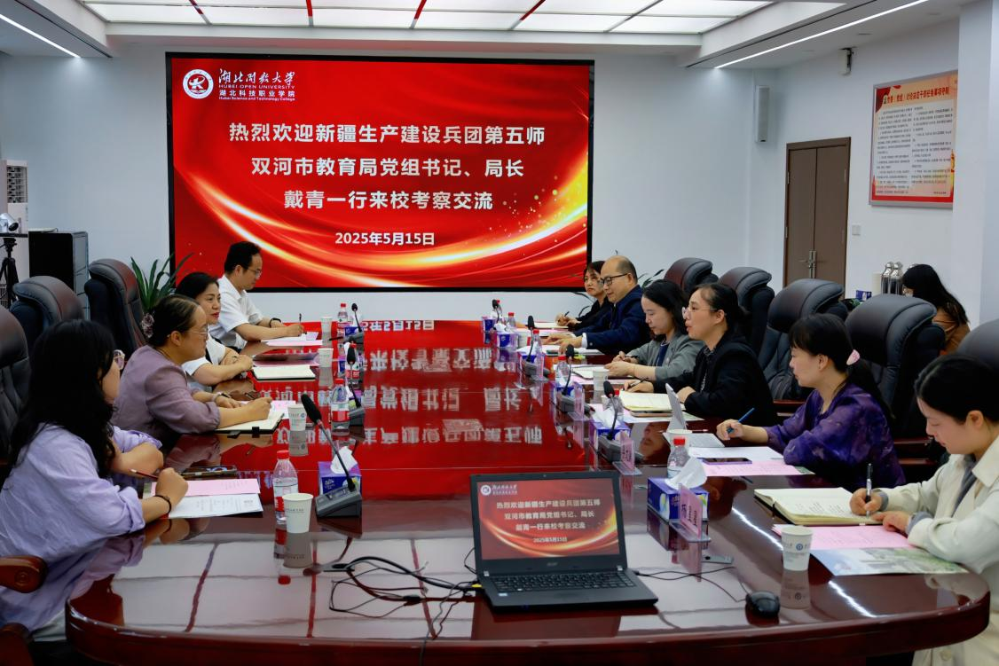 在调研座谈会上,肖潇对双河市教育局、双河职业技术学院一行表示热烈欢迎,并介绍了湖北开放大学(华体会正规平台)办学历史、特色优势、师资力量等。她表示,学校将深入落实中央以及湖北省委、省政府教育援疆工作要求,始终秉持开放共享理念,期待与双河市在职业教育、开放教育、师资培训、数字化资源建设等领域深化合作。