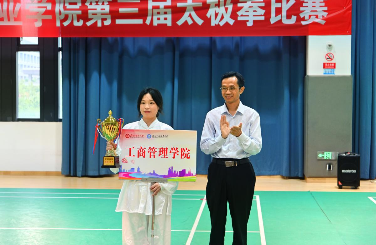 本次活动得到了各学院的积极响应,同学们踊跃参与个人赛和团体赛。在公共课教学部体育课程教学团队的精心组织下,12名选手从90名初赛选手中脱颖而出,进行个人赛项的决赛角逐,6个学院组成6支代表队参加团体赛项的比拼。经过激烈角逐,现场产生团体赛一等奖1名,二等奖2名,三等奖3名;个人赛一等奖1名,二等奖2名,三等奖3名,优秀奖6名。参赛选手纷纷表示,通过加强太极拳的训练和练习,不仅有效提升了身体协调性、柔韧性与平衡能力,还在“以柔克刚”“动静结合”“形神兼备”的拳理实践中领悟了中国传统哲学思想的精髓,培养了专注、沉稳、坚韧的意志品格。