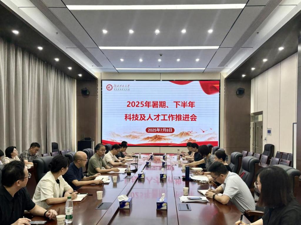 本网讯(通讯员 高杨舒 文/图)7月8日上午,学校召开2025年暑期、下半年科技及人才工作推进会。副校长汤春来出席会议并主持,相关职能部门负责人及各学院院长、书记参会。