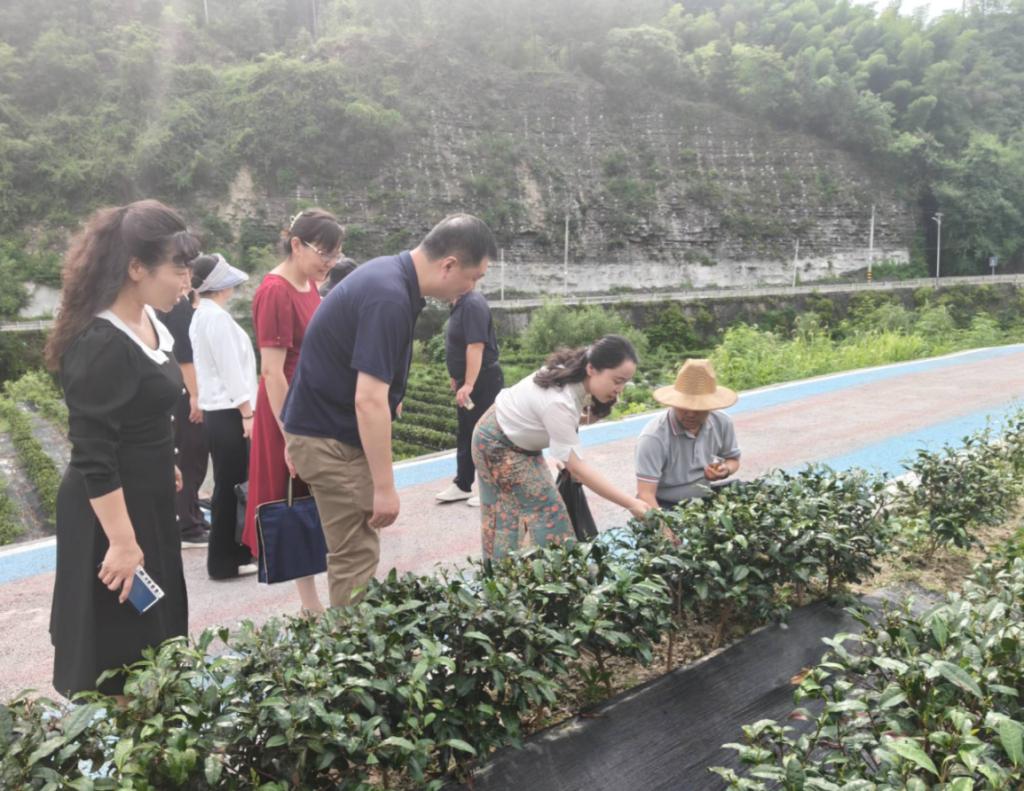 肖潇一行慰问了乡村振兴工作队,实地考察了茶叶种植园和茶文化研学基地,询问了产业发展情况,听取了非遗项目介绍;随后看望了正在村里开展“三下乡”社会实践活动的师生,并带领“爱心妈妈团”开展送温暖活动,慰问结对帮扶儿童。