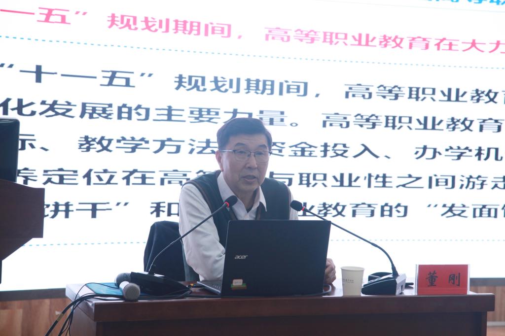 董刚教授的报告《高职教育高质量发展与“双高计划”实施及思考》以我国高等职业教育的发展历程为切入点,详细介绍了“双高计划”的总体目标和改革发展任务,结合自身丰富的工作经验,生动讲解了“双高计划”建设院校实践案例。董刚强调,“双高”院校建设充满机遇与挑战,要进一步加强对育人成效的关注度,注意双高建设带给学生的变化、成长和发展;要推进专业群课程体系建设与实施不断向纵深发展,进一步体现群价值;要正确把握高水平专业群建设路径,重视技术技能创新服务平台打造,提升技术创新服务平台建设水平,加强面向生产服务一线的技术专利、产品升级开发和成果推广转化,要解放思想、学思结合,认真做事、用心做事,推进和谐校园建设。